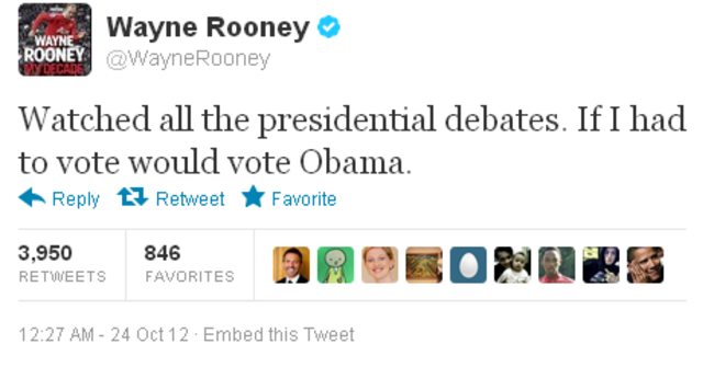 THE US PRESIDENTIAL election is shaping up to be one of the tightest in history, but with less than two weeks to go until voting day, Barack Obama has tied up an unexpected endorsement — from Manchester United striker Wayne Rooney.