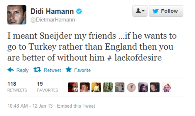 The German added scornfully that even being linked with a move to Galatasaray was a signal that Sneijder’s commitment to the game was questionable.