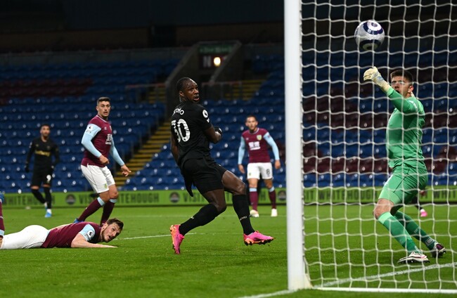 After Dwight McNeil lost possession to Pablo Fornals close to his own area, Jesse Lingard laid the ball off for Vladimir Coufal to cross, and Antonio got between Matt Lowton and James Tarkowski to head home from close range.