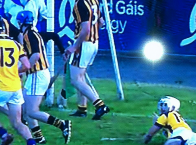 With the score at 21 points apiece the ball was dropped into the Kilkenny square and a scramble in the goalmouth, one brave umpire raised the green flag to signal an own goal off netminder Aaron Duggan.