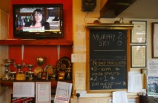 Pub landlady Karen Murphy giving an interview on the television in her pub, The Red White and Blue, in Portsmouth after defeating the Premier League in a bid to show football matches via a foreign TV decoder. Chris Ison/PA Wire