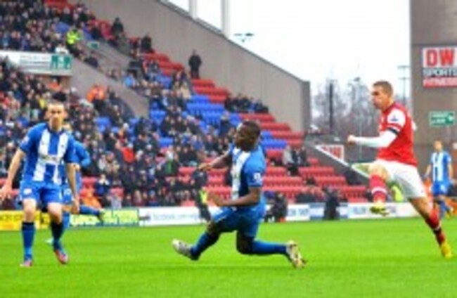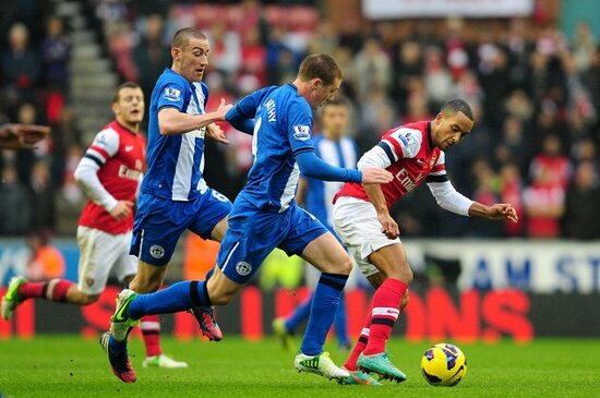 Cazorla feeds Walcott moments later, but his attempt is blocked by a Wigan defender.