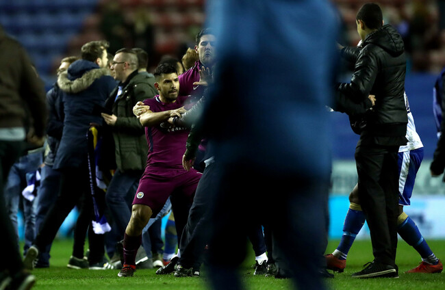 FA Cup Sergio Aguero Manchester City Wigan Athletic Ugly scenes