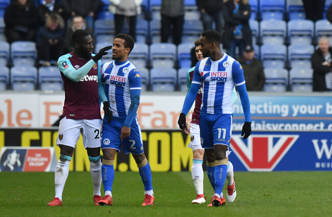 West Ham's Masuaku sent off for spitting as Will Grigg-inspired Wigan cause FA Cup upset