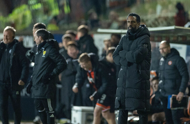 Celtic manager Wilfried Nancy as the final whistle sounds against Dundee United. Alamy Stock Photo