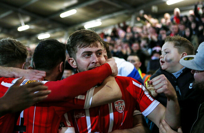 Patching fired the Candystripes into a fourth-minute lead with a sublime curling effort into the far corner of the net to stun Tim Clancy’s troops in front of a packed Brandywell.