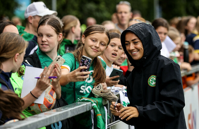 Over 1,200 kids turned up for this morning’s WNT open training session; the fans, young and old alike, kitted out in Ireland jerseys and waving green flags as excitement levels rose.