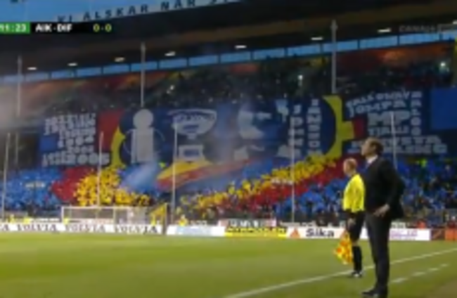 The recent Stockholm derby. Not pictured: Complete silence. YouTube screengrab