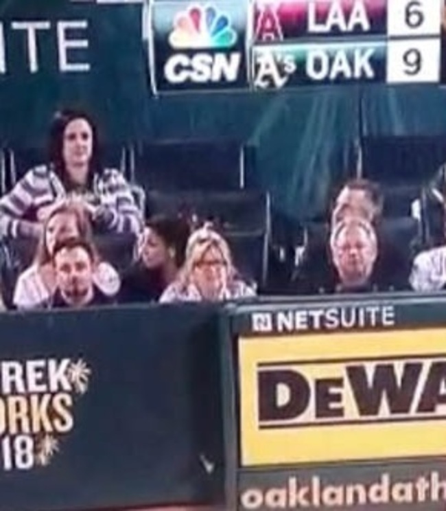 WELL, THIS IS awkward. We all know taking plenty of snaps, sending tweets and Facebook updates is part of watching professional sports these days. But this woman, sitting behind home plate at an Oakland game this week, takes it to a whole new level.