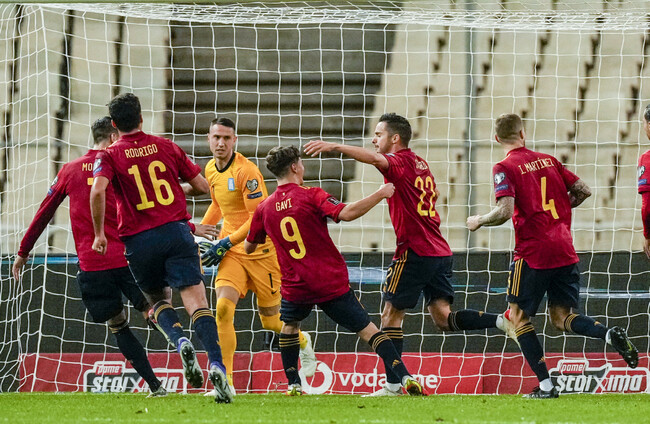 Spain’s winner in Athens came via a Pablo Sarabia penalty in the 26th minute as they moved to the top of their group.