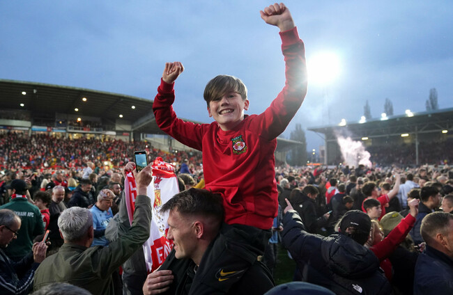 Reynolds and McElhenney were joined in their box at the Racecourse Ground by fellow actor Paul Rudd to watch a 3-1 win over Boreham Wood that secured the Welsh side’s passage to the fourth-tier of the English football pyramid.