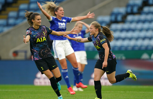 TOTTENHAM JOINED ARSENAL at the top of the Women’s Super League with a 2-0 win at Leicester.