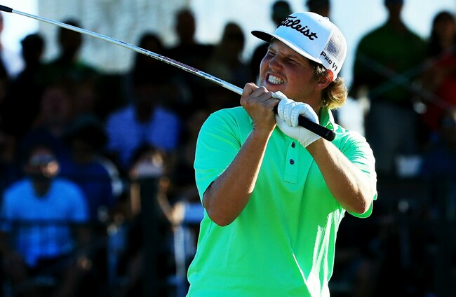 Blair let his frustration get the better of him at the par-five fifth, where he bent his club over his head after missing a birdie putt at Quail Hollow Club in Charlotte.